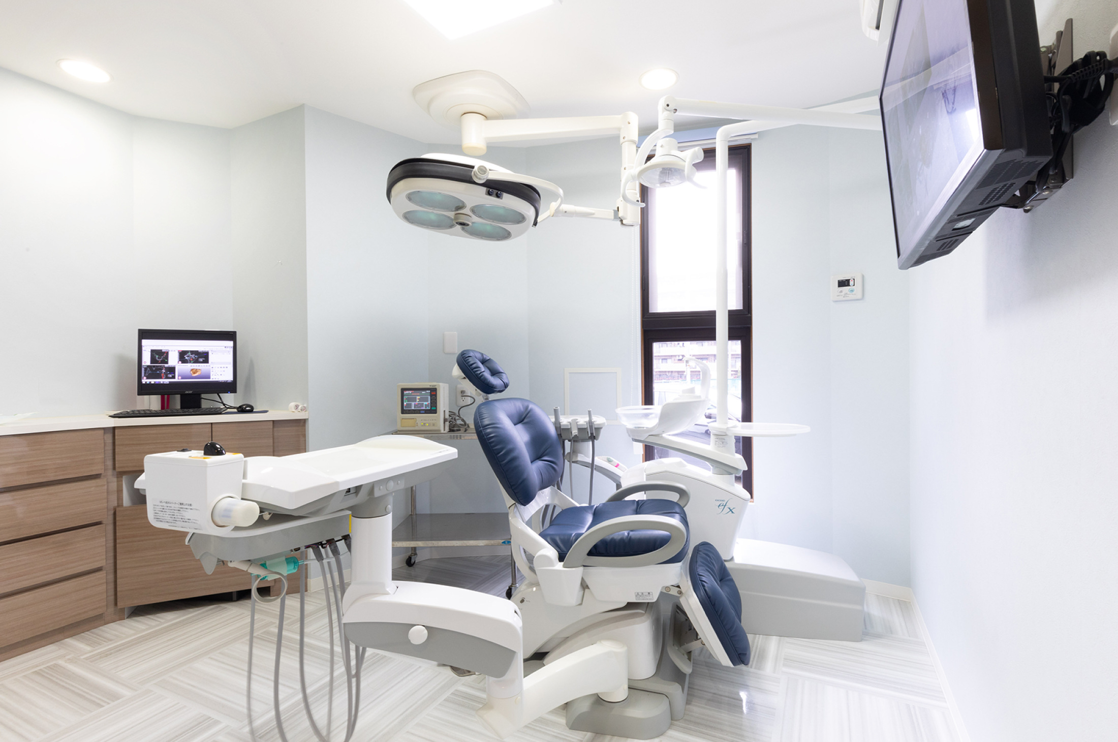モニターを完備し、インプラントなどの外科手術の際、精緻な治療が行えるようにオペ室を整えています。